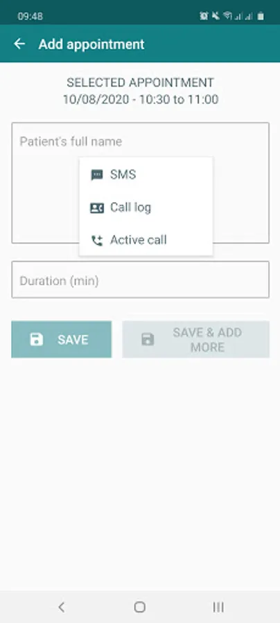 • Appointment schedule – Allows user to make a appointment for patient examination, taking into account the schedules and resources of health institution. When scheduling an appointment, user has the option to enter necessary patient information in the appointment note, get it from an SMS message sent by the patient or get the phone number of the patient who called/on call (from the call list or from the active call).