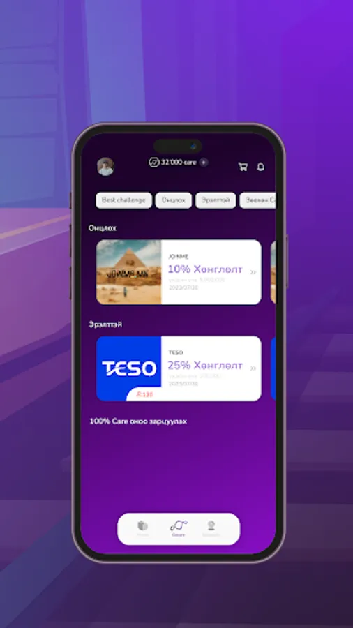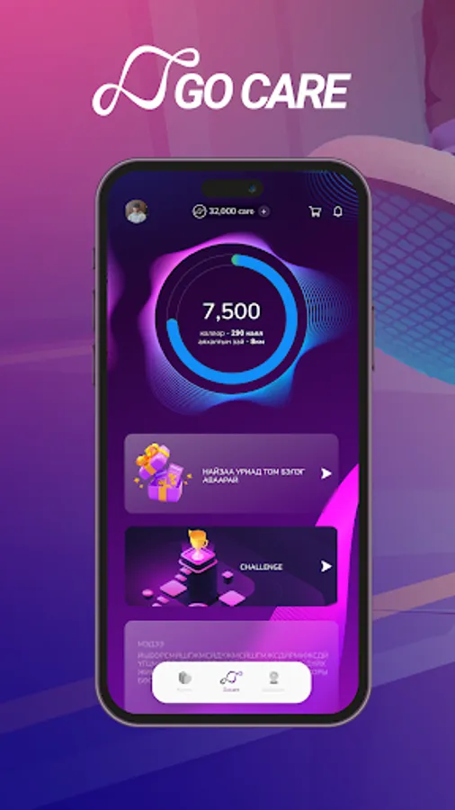 Our app is to encourage users to engage in active movement and we give people our "Care" points for walking, which you can use these reward points for various coupons. And also the user will be able to earn more points by completing the task of walking along the path indicated on the map from the current location.