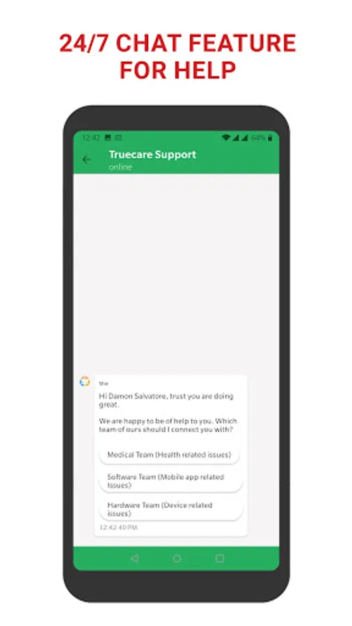 TRUECARE also offers a 24/7 chat support for the patients to reach out to our care co-ordinators.