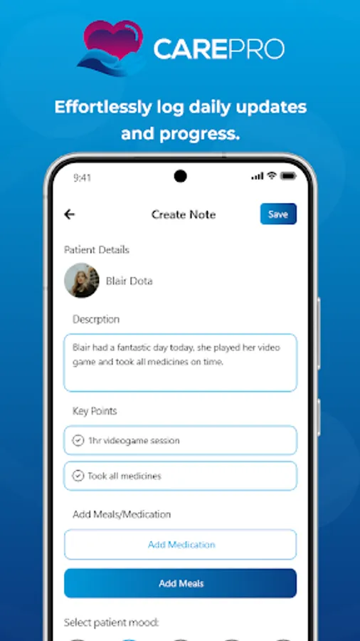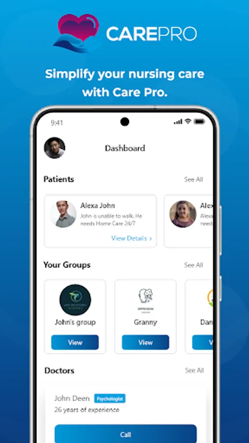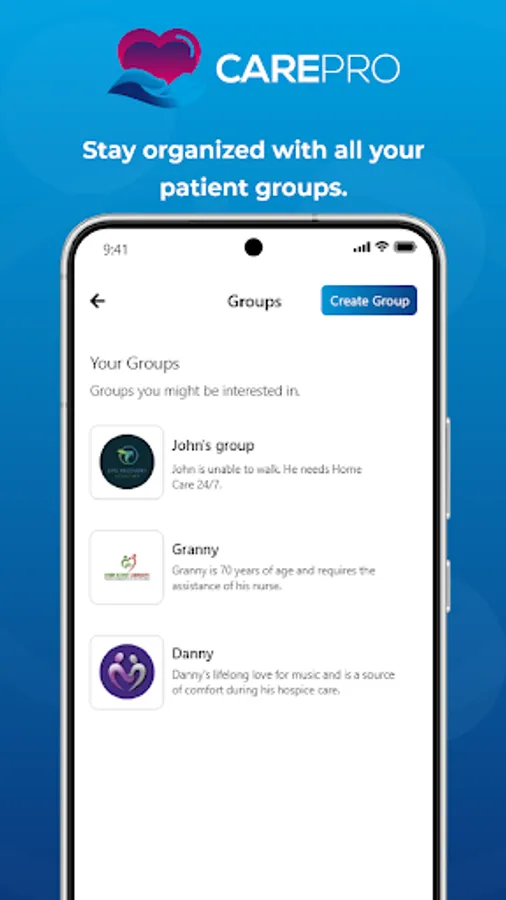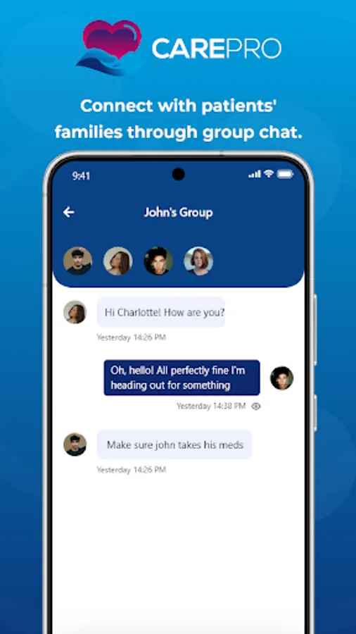 Care Pro is the ultimate nursing companion, designed to help you provide the best care possible to your patients. Care Pro streamlines your day-to-day tasks, making it easier for you to focus on what matters most - your patients. With Care Pro, you can quickly and easily manage all your patients and maintain their medical records, all from the convenience of your mobile device. Plus, with the group chats, you can be in touch with patient's family members 24-7. Download Care Pro today and discover how easy nursing can be.