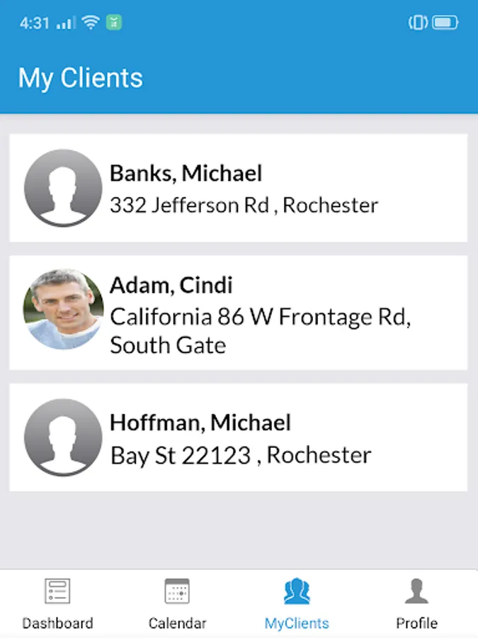Client list and client details