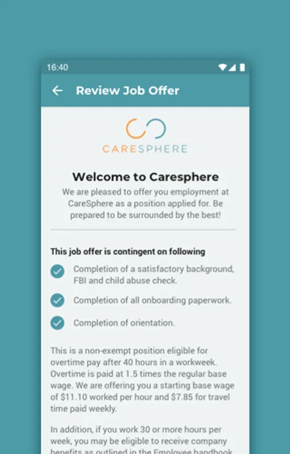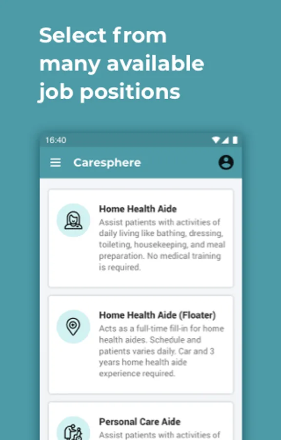 Are you already working with CareSphere? Download the app to Chat with us and see your personnel file.