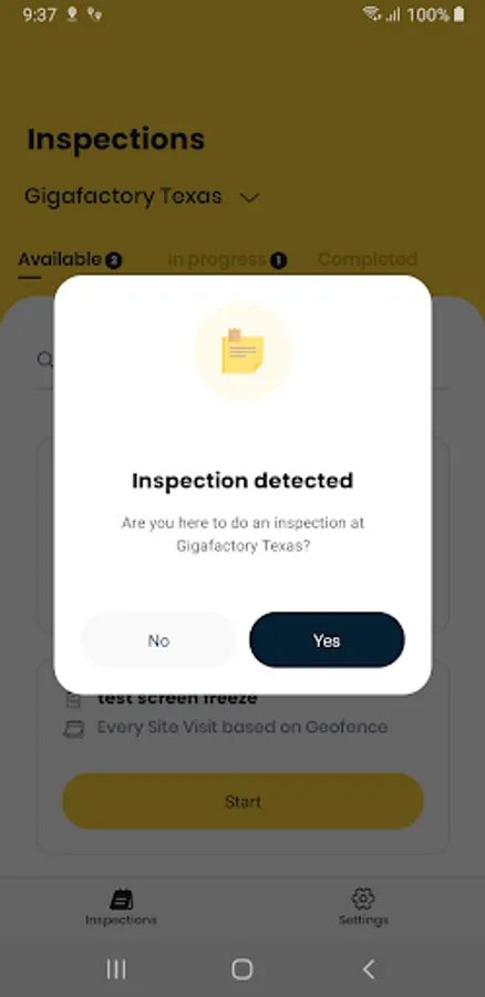 -Get push notifications in the background when you enter a geofence of a site asking “if you are there to complete an inspection”. Inspections can then be started with a simple button press