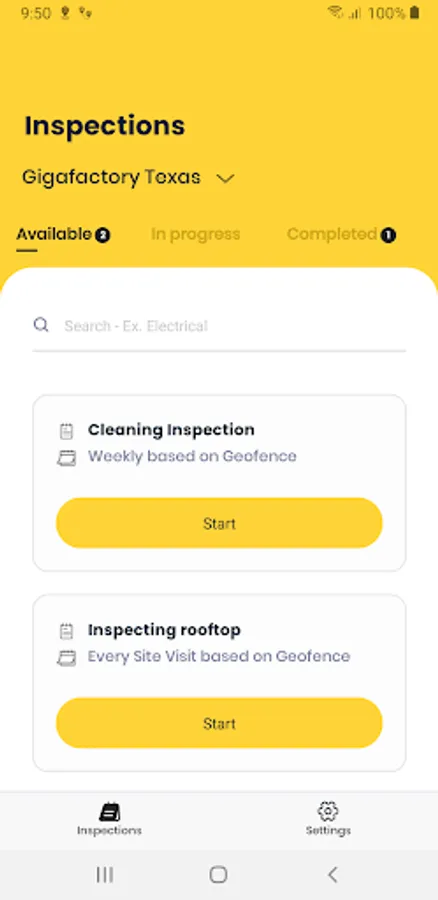 -Inspections can only be started when inside a geofence area of a site that was previously created by a manager.