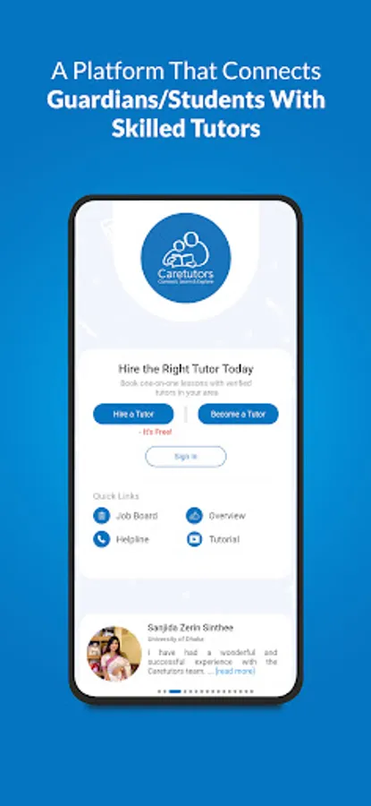 Caretutors is first ever online platform in Bangladesh to hire tutors and search tuitions. It was founded in 2012. Now the platform has available four types of tutoring. Those are- Home Tutoring, Online Tutoring, Group Tutoring and Package Tutoring. Home tutoring service is available in all the major cities in Bangladesh such as Dhaka, Chattogram, Sylhet, Khulna, Rajshahi, Barishal, Rangpur, Mymensingh, Savar, Gazipur, Narayanganj & Cumilla. And in online, it's available in all over Bangladesh. Moreover, service of this platform is also expanded in the Middle East (Saudi Arabia, UAE, Oman, Qatar, Kuwait). It’s vision is to connect the learner with the right tutor.