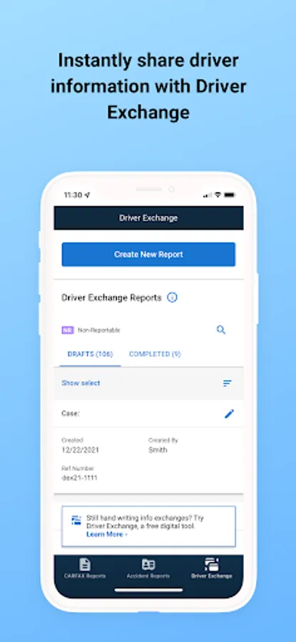 • Use Driver Exchange to complete reportable or non-reportable accidents in minutes.