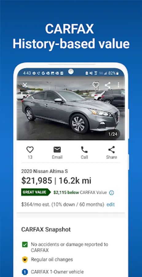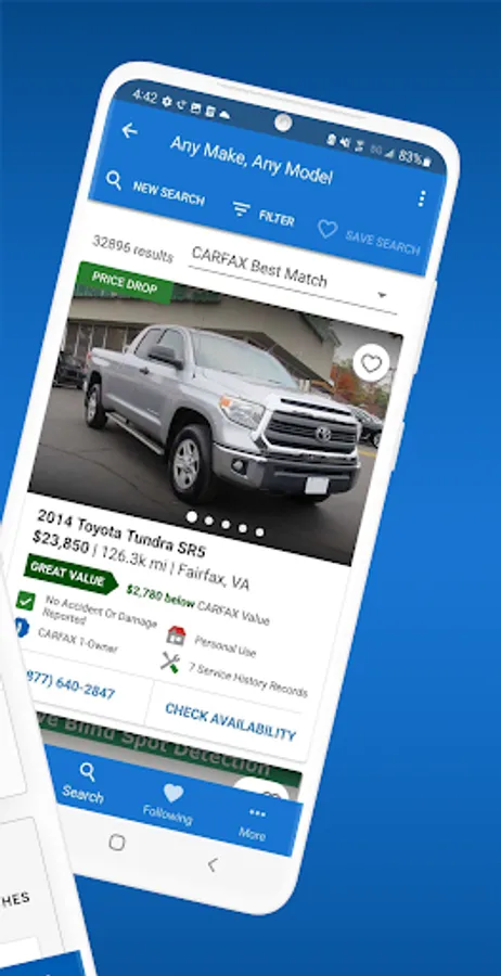 The FREE CARFAX – Find Used Cars for Sale app can help you find a great used minivan, SUV, truck, or sedan near you. This NEW FREE app gives you the power to shop for 1-Owner, Well-Maintained used cars and can help you avoid cars with accidents reported to CARFAX.