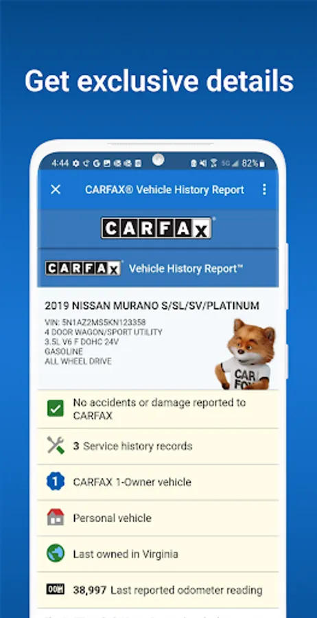 - Accidents and service reported to CARFAX: Get lots of details to help you shop.