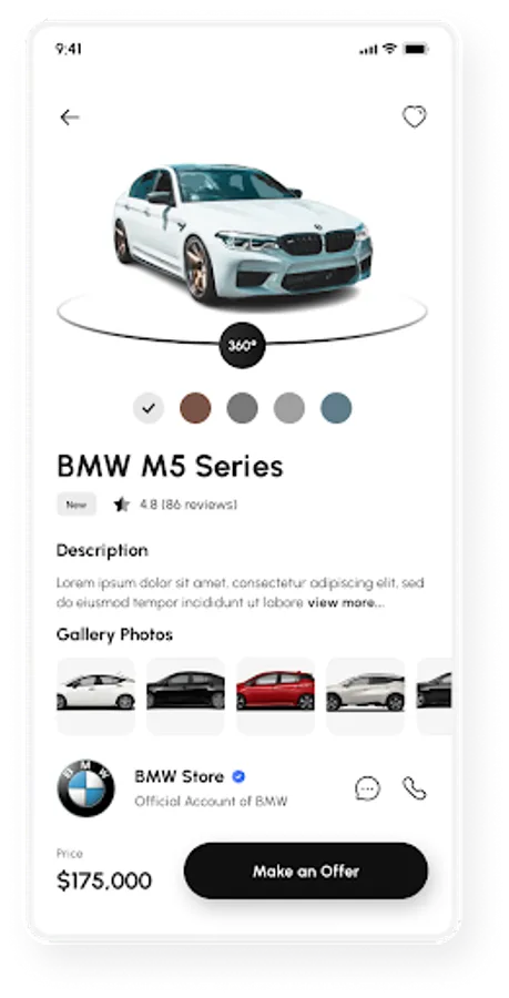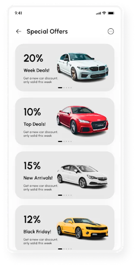 Financing Options: Explore financing options and connect with trusted lenders to secure the best rates and terms for your car purchase. Get pre-approval for an auto loan directly through the app, simplifying your car buying process.