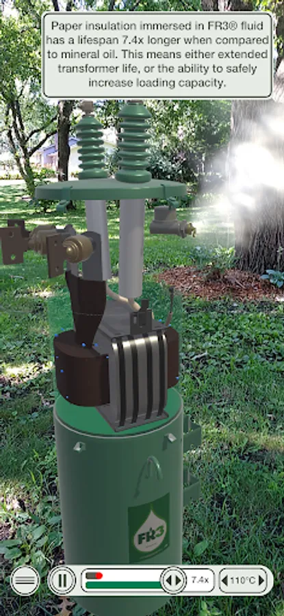 An interactive augmented reality tool, demonstrating the benefits of choosing FR3® fluid by Cargill for your transformer dielectric fluid.