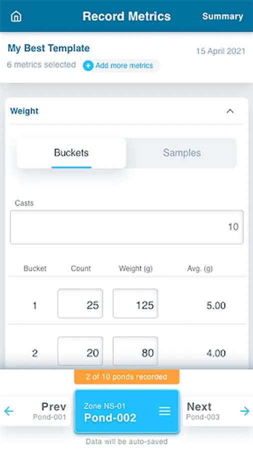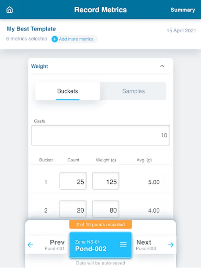 · View a general summary of the multiple parameters, zones and / or ponds entered in Farm Status Summary, filter them and sort them by cultivation stage, zones or ponds for a better visualization.