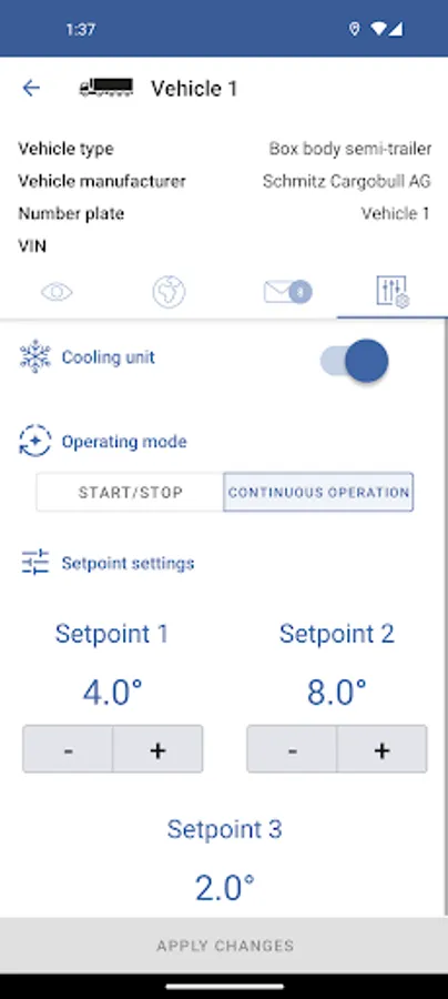 Remote chiller control: Full control over the chiller thanks to mobile setpoint adjustment, operation mode selection, and monitoring of interior temperatures.