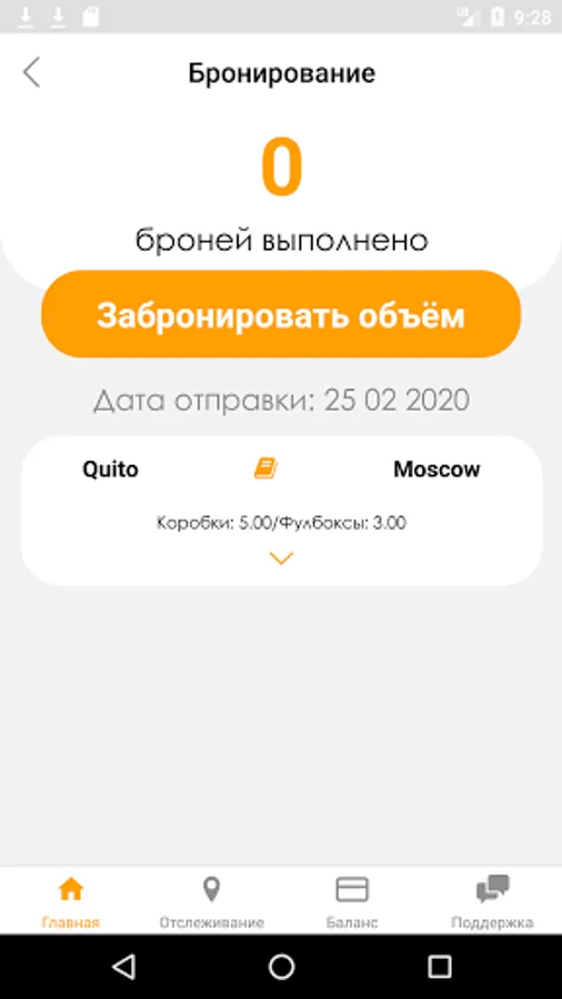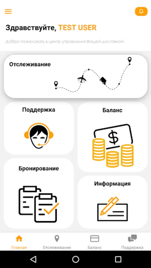 In our application, you can book a cargo, view all stages of delivery of your cargo and financial statements, get answers from our employees to any questions about your reservations and deliveries.