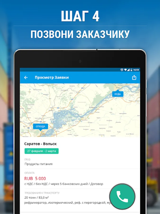 DEPARTURE OF CARGO IN RUSSIA AND TRANSPORTATION helps to carry out cargo transportation using a convenient application. Now cargo search has become even faster - you can quickly find an order and call customers directly from the application.