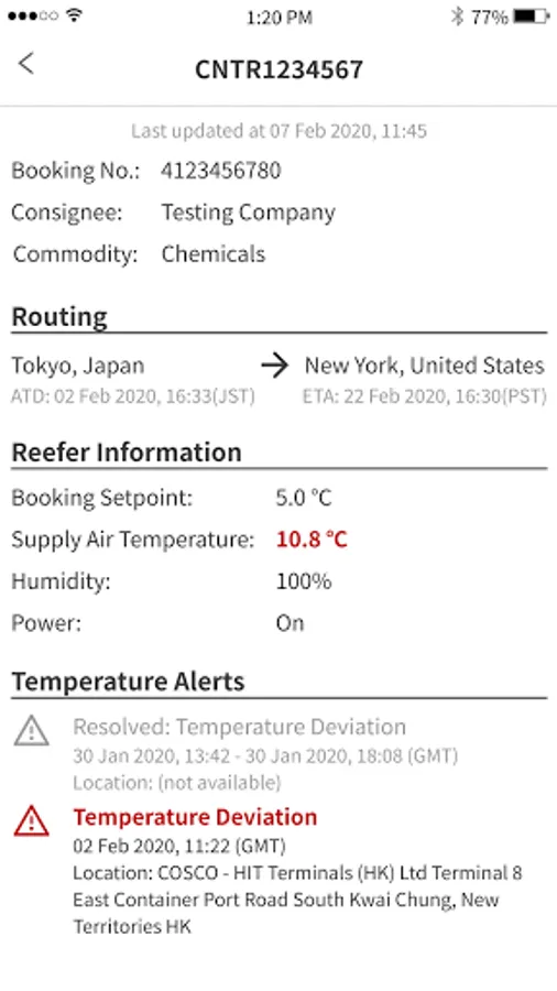 My Reefer provides latest location and temperature of your reefers and send temperature deviation and key location arrival notifications by IoT solutions.