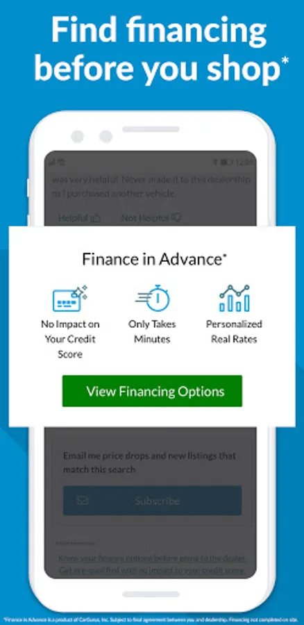 *Finance in Advance is a product of CarGurus, Inc. Subject to final agreement between you & dealership. Financing not completed on site. Completing a credit application at a dealership may result in one or more inquiries posted to your credit file. Subject to agreement on terms and conditions with the participating lender.