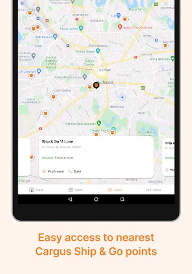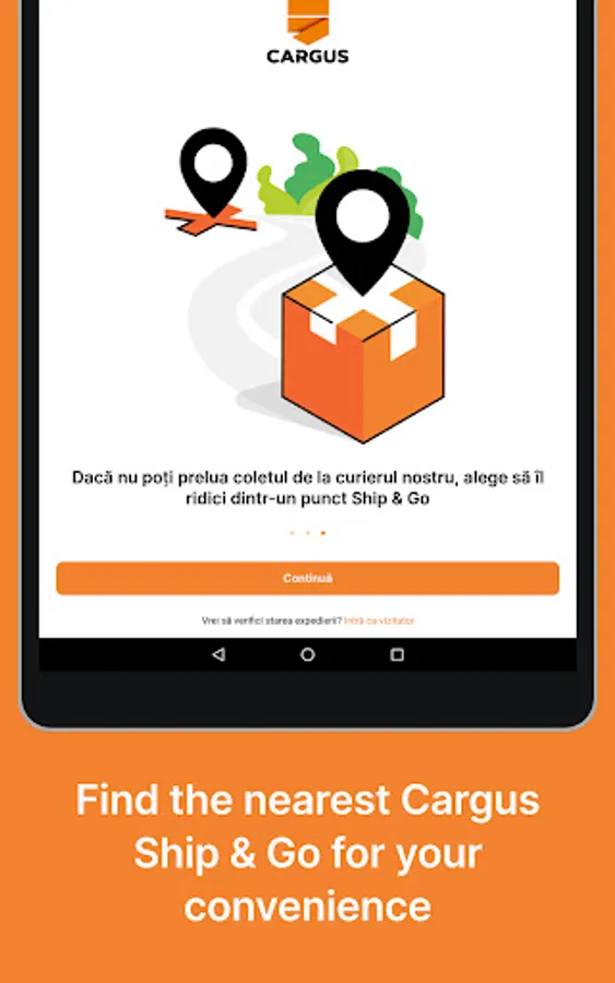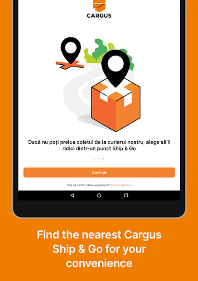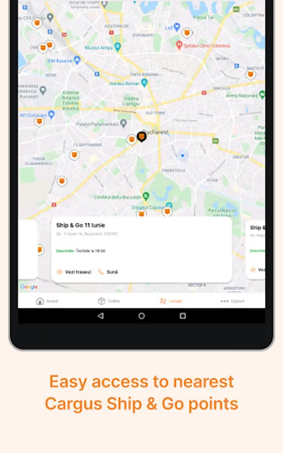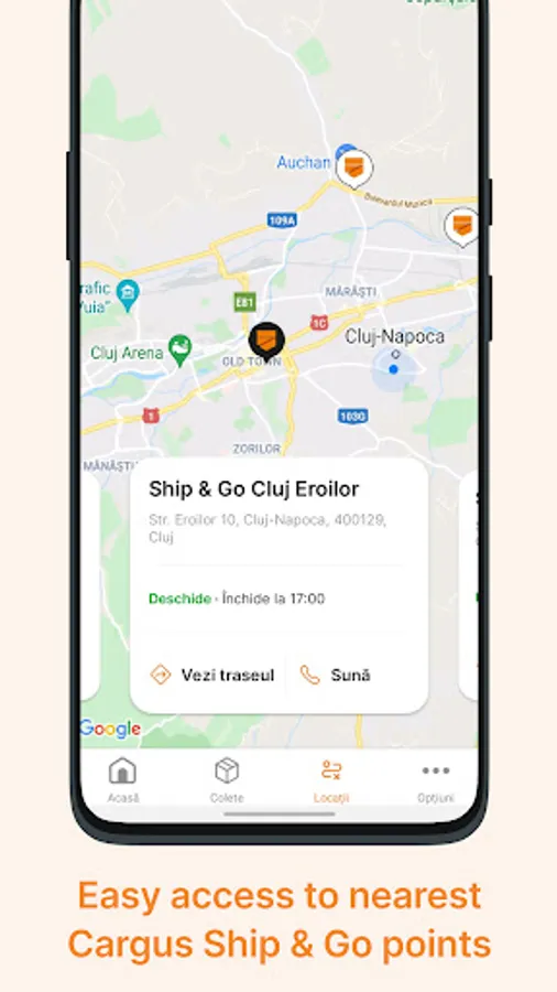 Cargus Mobile app lets you easily track your parcels and manage your deliveries all in one place. You can locate the nearest Cargus Ship & Go Point for parcel drop-off or collection- right on your smartphone. Download the Cargus Mobile app to customize when and where you wish to receive your parcels.