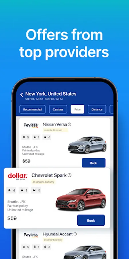 Car Hire・Rent a car app helps to search, compare & book the best rental cars quickly. Get offers from hundreds of car rental companies like Localiza, Thrifty, Turo car rental, Zipcar, Budget car rental, Europcar, Enterprise car rentals, Global rent a car, Hyrecar, Rent a wreck, National car rental, Right cars global rentals, Hertz rent a car, Avis car rental, Getaround rent car, Carla car rentals, Sixt rent a car, Dollar car rental, Alamo rent a car, Discover rental cars, Gig car share, and many more budget rent a car deals.