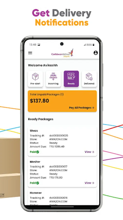 Shop online and receive your packages on your own terms with our redefined Caribbean Airlines Jetpak service. Just send your purchases to our Miami warehouse and receive free delivery or collect them at our Piarco facility.