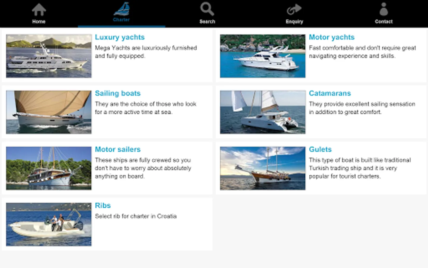 Caribbean Yacht Charter mobile app is iPad & iPhone optimized for easy offer browsing.