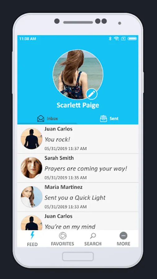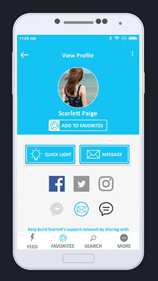 The CaringBand app has an embedded sharing feature so you can get others to send encouragement. Simply click on the user profile from the “Favorites” page to access your sharing options. Use our default message or your own to rally your network.
