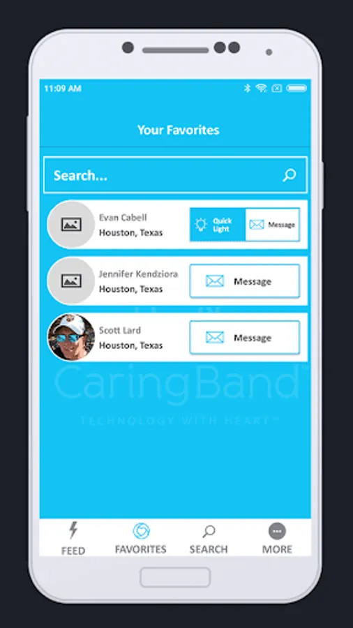 CaringBand is the perfect way to encourage anyone going through a challenging time. The CaringBand app allows users to quickly send pre-set messages to other CaringBand app users. Those who are also wearing a CaringBand bracelet are alerted with a blinking light and or pulse vibration indicating an encouraging message has been received. The wearer then reads the messages on the CaringBand app when convenient and with no need to respond.