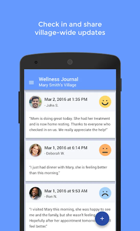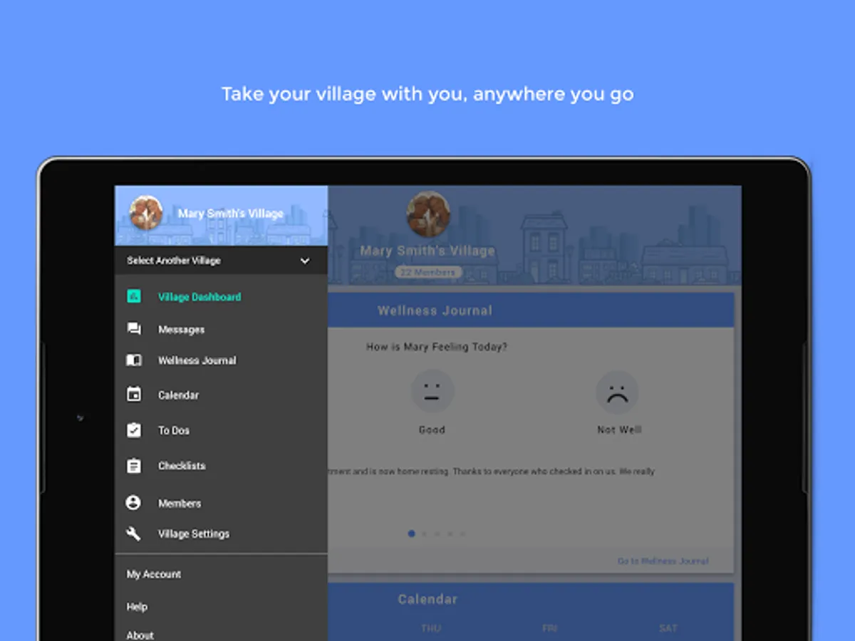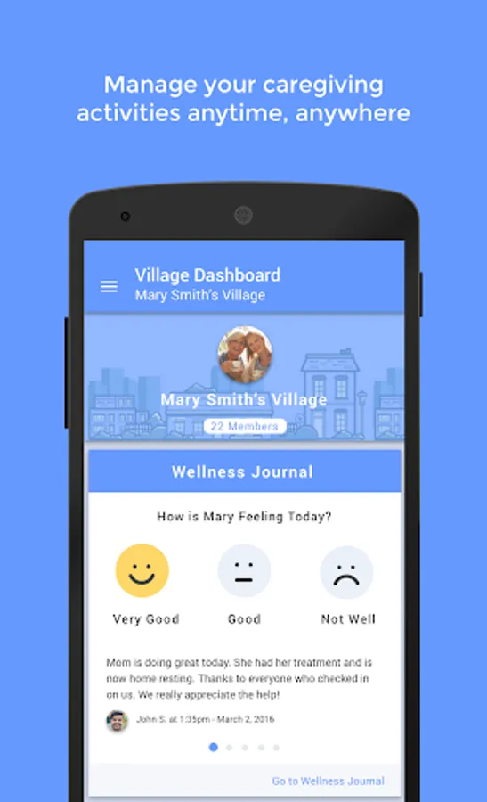 • Wellness Journal: Keep your village updated or check in on the day-to-day status of your loved one