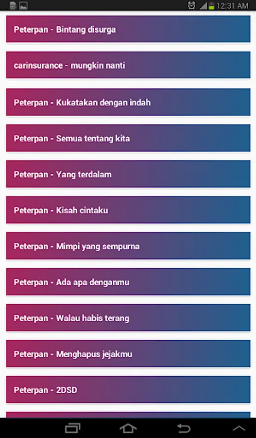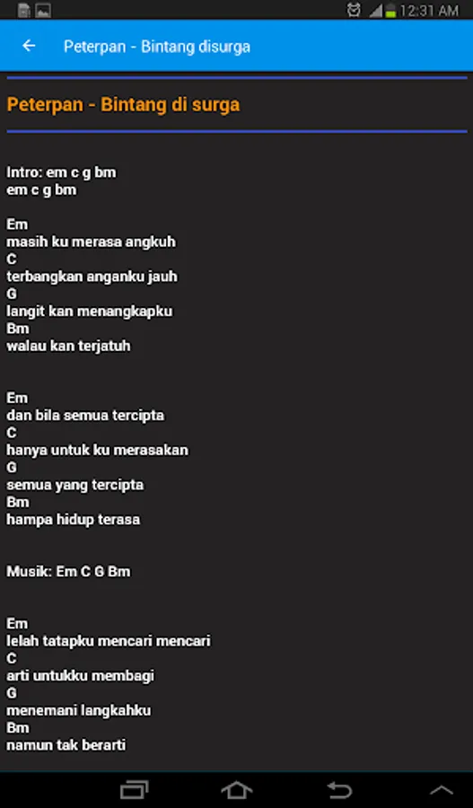 This application is an application that contains a collection of songs from peterpan that can be played offline and is also accompanied by song lyrics and chords.