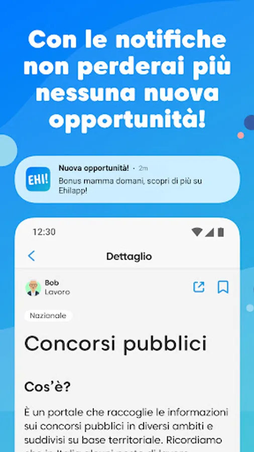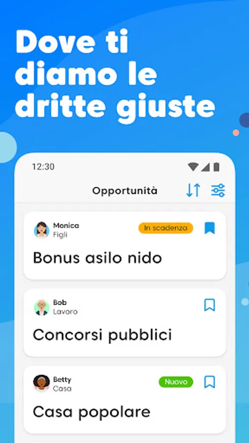 Choose whether to see all the opportunities or only those that really interest you. Hey app! allows you to turn on/off the categories that interest you with a simple touch, you can choose between work, home, maternity, children, health, the elderly and leisure.