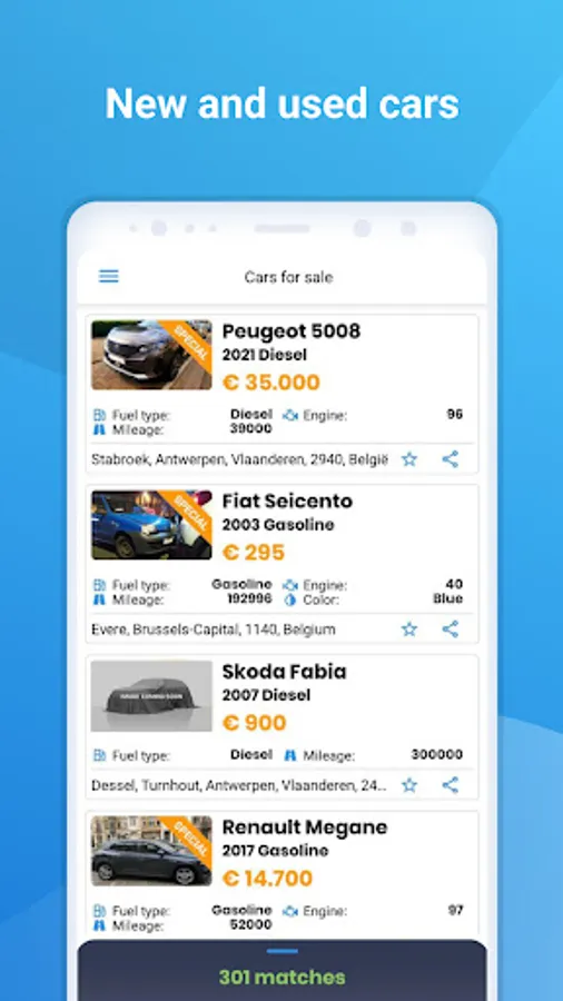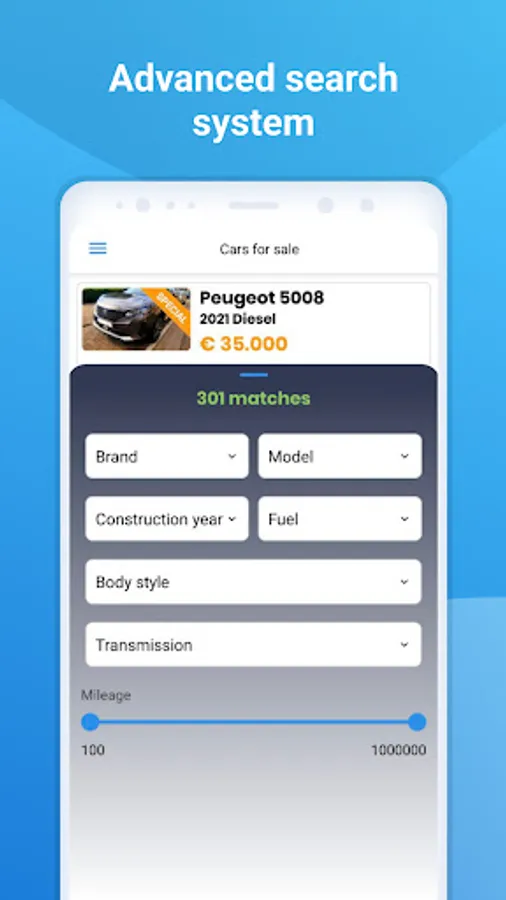 * Vind snel uw droomauto via nauwkeurige zoekcriteria.