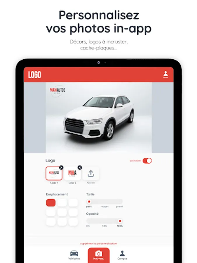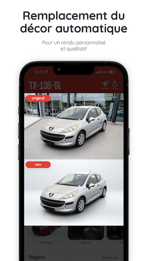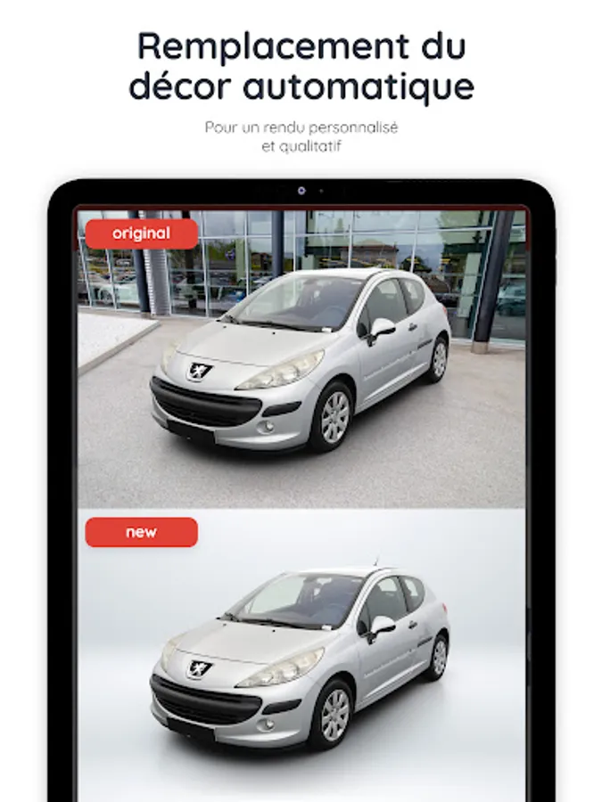 Can't set up a photo studio on your premises? No problem: photograph your vehicles wherever you want and the app takes care of improving the photos automatically.