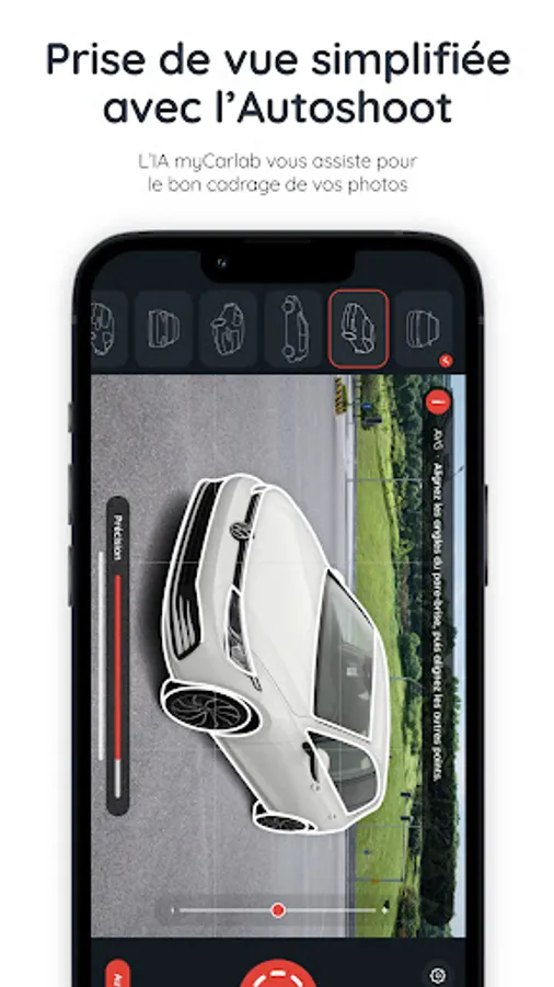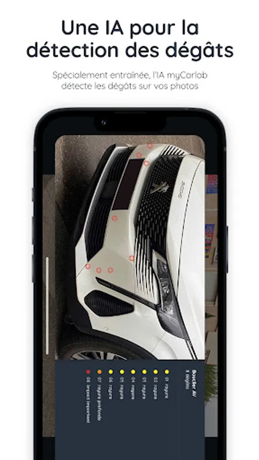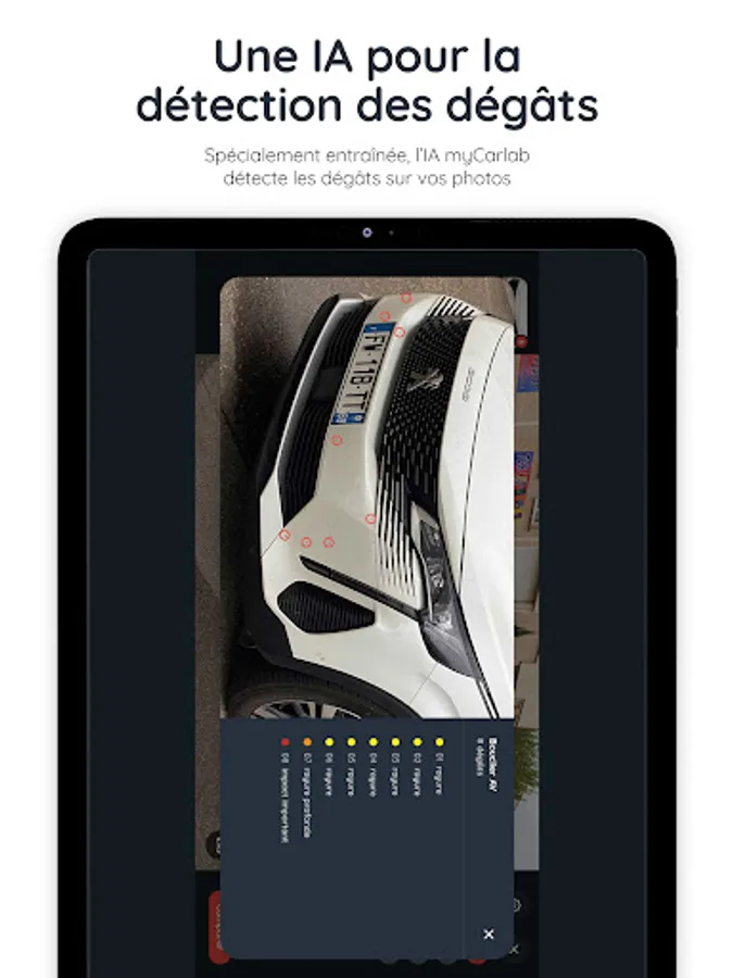 · Damage scanner: the myCarlab AI analyzes your photos and detects on its own all the damage present on your vehicles.