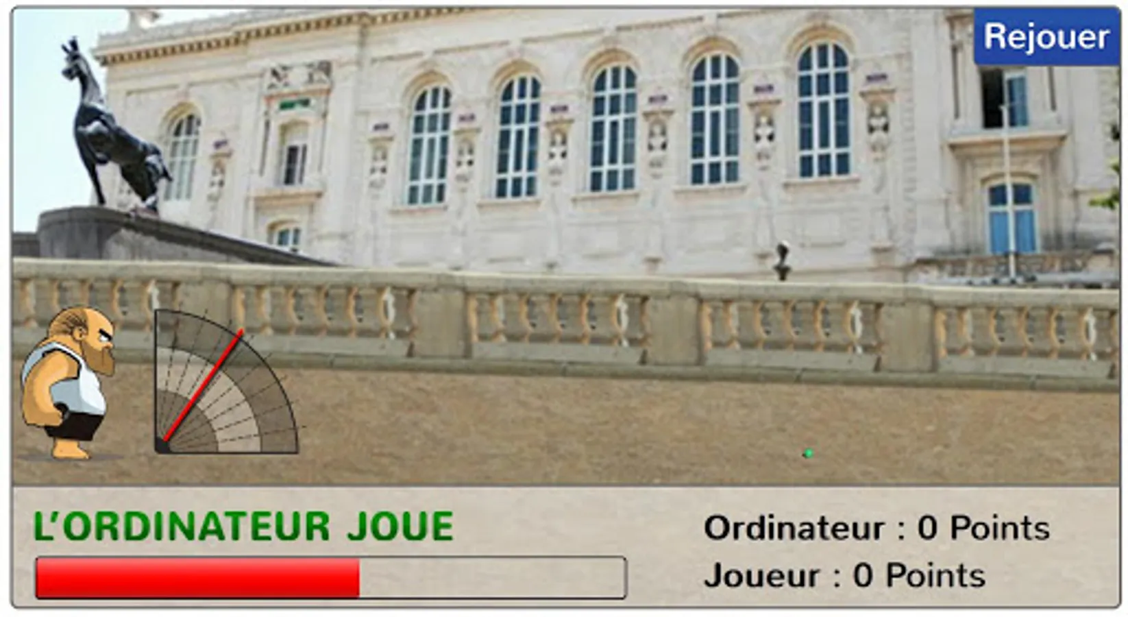 Once the computer has played, simply click anywhere on the screen to stop at the right time gauges strength and angle. The greater the angle, the greater the force will be reduced, the greater the angle, the lower the force will be increased tenfold.