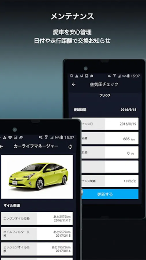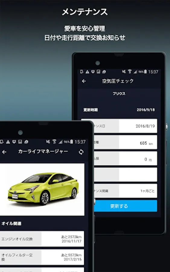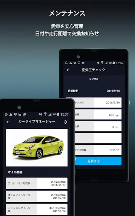 Consumables, manage the exchange and update time information such as a license, it is the ability to let you know. Keeping the car in the best of condition, do not miss the maintenance time. Maintenance at the appropriate time, will lead to continued riding comfortably long time the car.