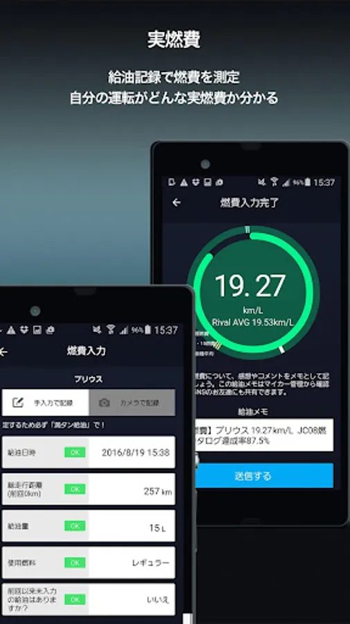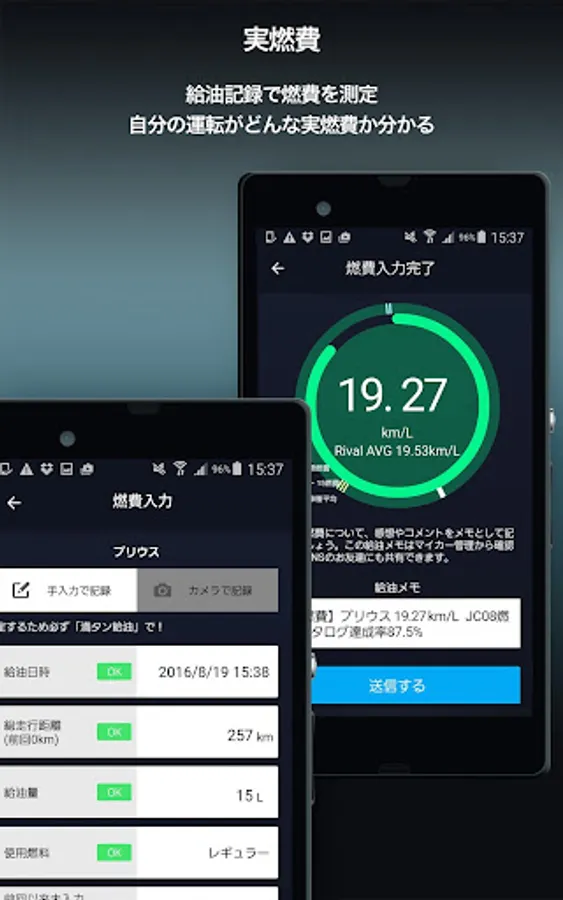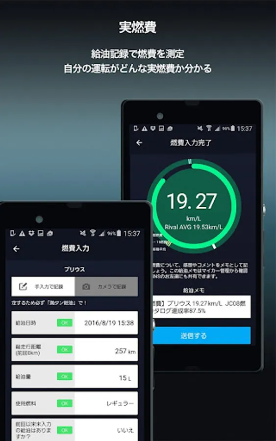 Conventional manual input function also redesigned the interface, you can make fuel consumption input with crispy operation of smartphone unique.