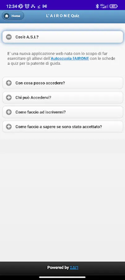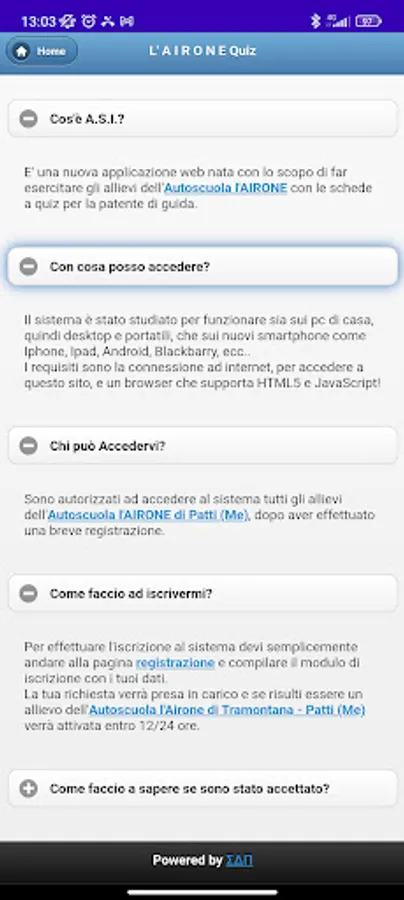 Quiz Patente APP dedicated to students enrolled in courses for obtaining driving licenses at L'AIRONE driving school in Tramontana di Patti (ME).