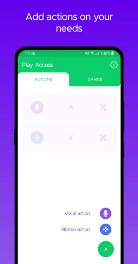 With Play Access, you can re-map actions you can do (like pressing an external button or pronouncing a vowel) to events on the screen (like a tap, long tap, swipe). This makes it possible to quickly interact with existing games.