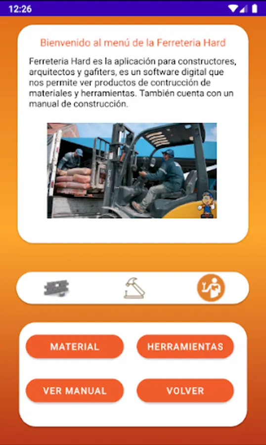 The application offers to be able to see tools, materials, to be able to visualize a manual so that the builder or master builder can make repairs and constructions at home or according to the place where the fault is.