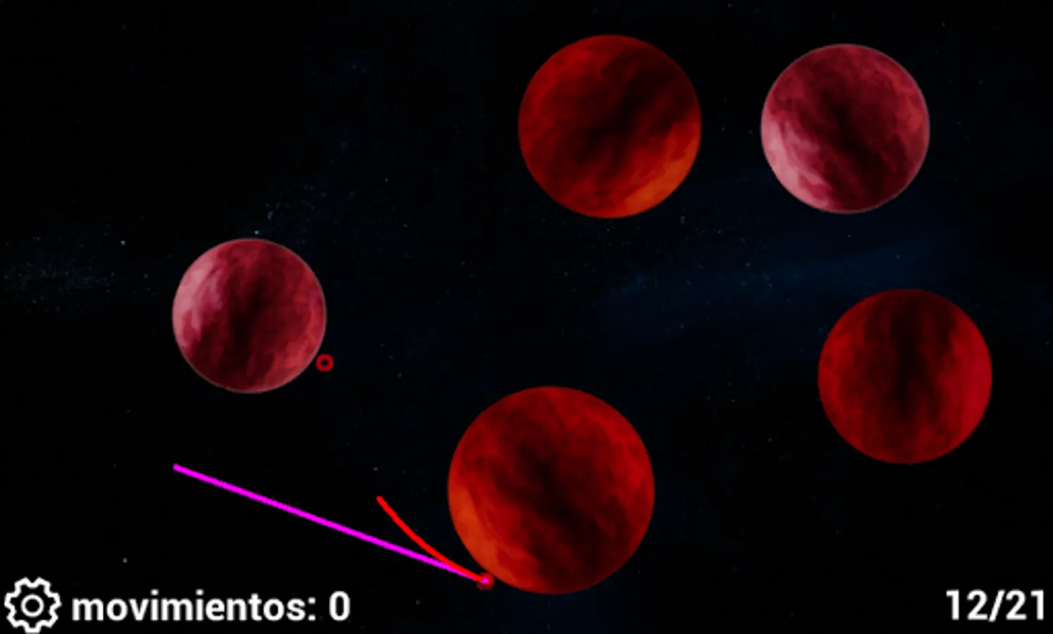 In each level, you must take the ball to the hole by throwing it through space. For this you must give a boost to the ball, but the planets deflect the trajectory.