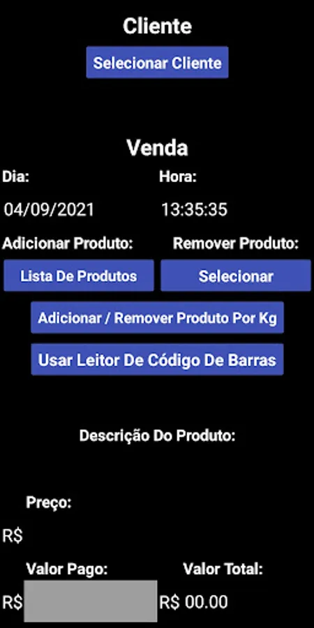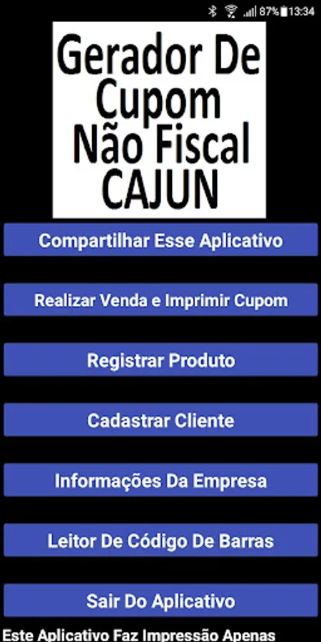 This application registers products using the barcode, registers customers, being able to pick up some contact from their phonebook, makes sales and generates a non-tax coupon that can be printed on a Bluetooth thermal printer.