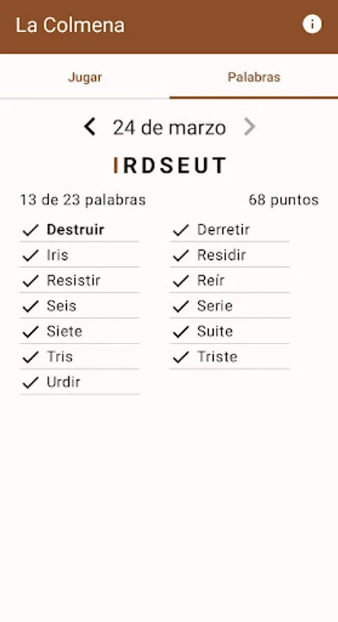 Every day a beehive of 7 letters for you to form as many words as you can.