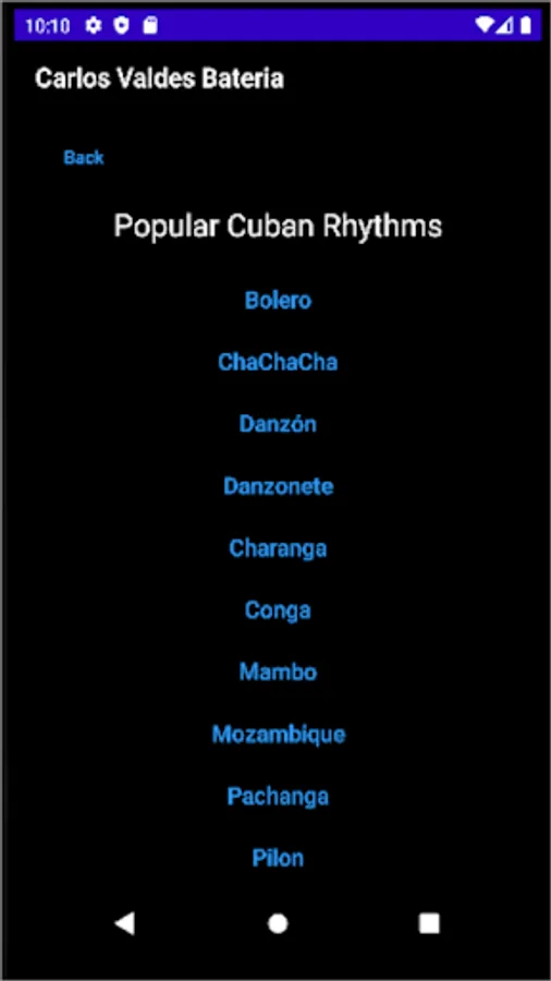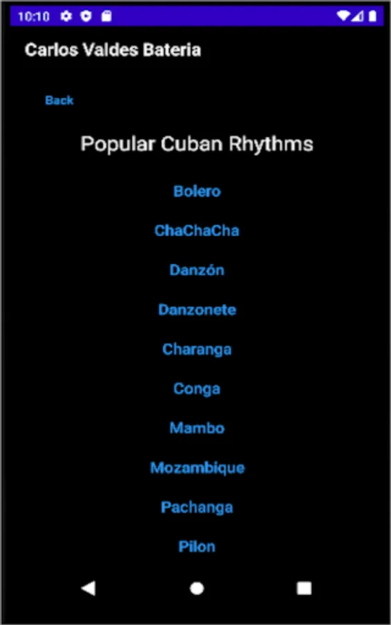 Aplicación enfocada en el aprendizaje de los diferentes ritmos de la música popular cubana.