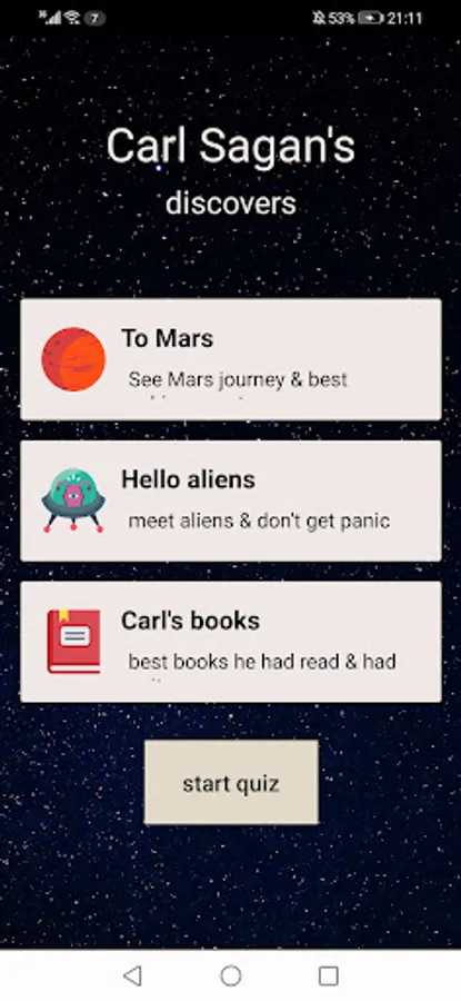 Download the application and get a set of information about Mars, aliens, Carl's books, and others