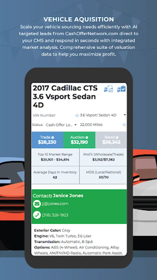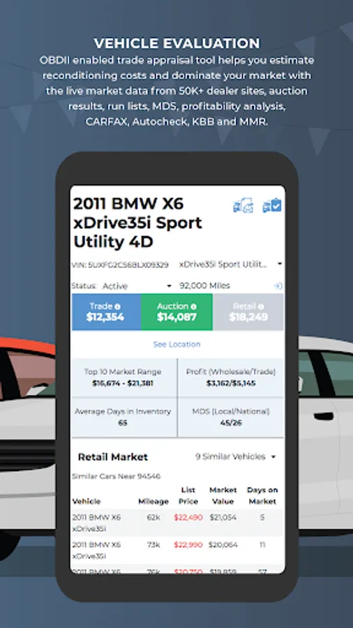 LotCONNECT takes out all the guesswork and shows you a single, unified view of vehicles you are evaluating whether at auction, trade, or for inventory price adjustments. Try LotCONNECT today to get started with out integrated VIN scanner, vehicle history reports and exclusive CarlStreet Realtime Market Value and live market view. You'll also get KBB valuations, recent auction results for similar vehicles, profitability analysis and access to additional data like MMR reports.