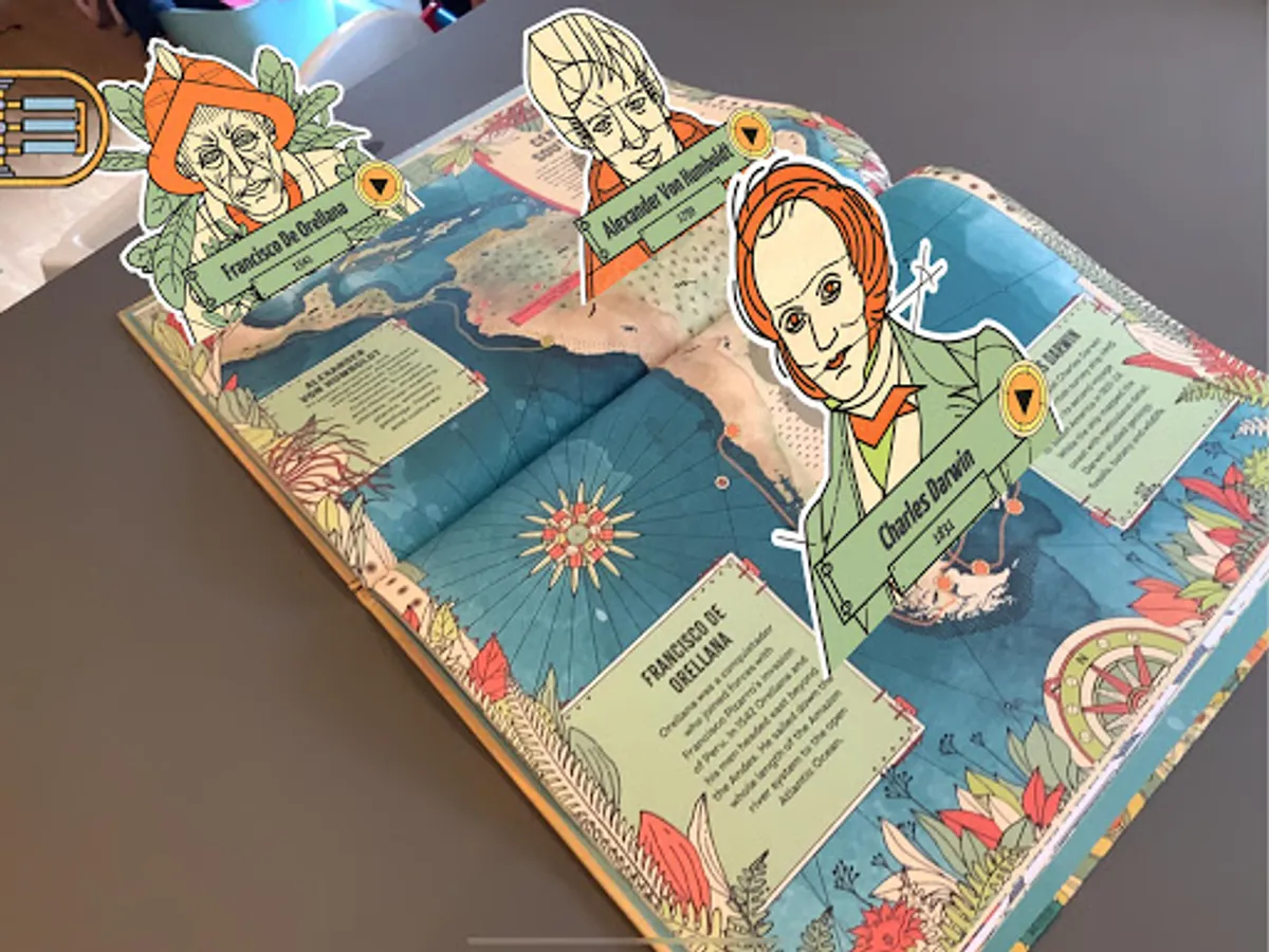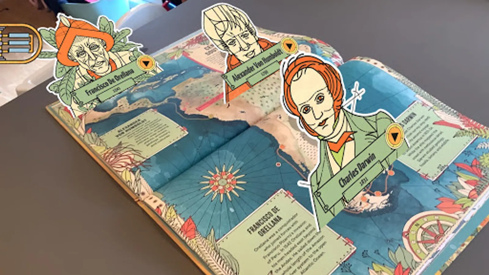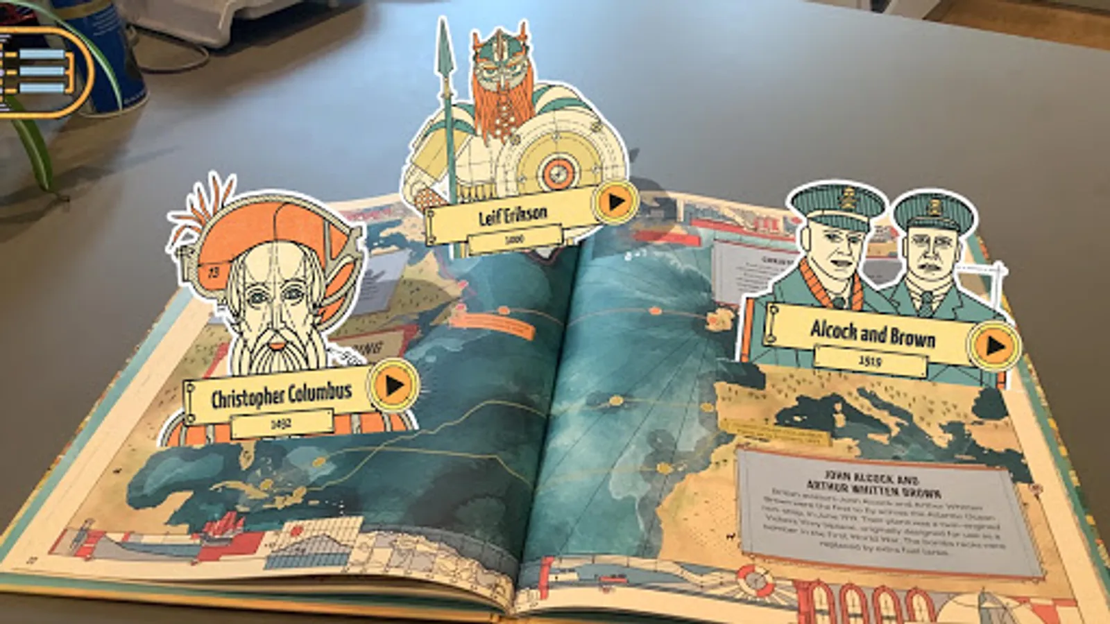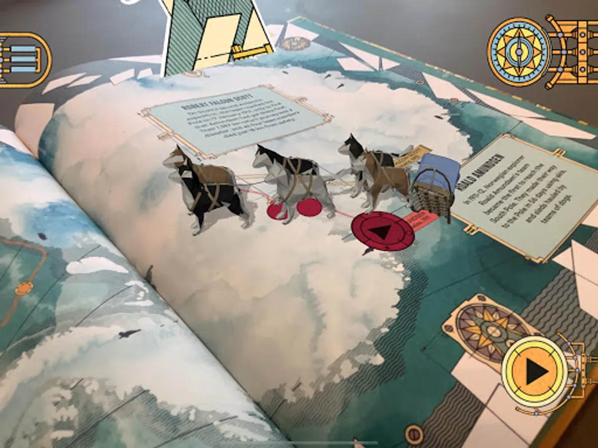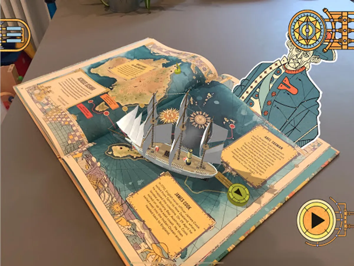 Once you press the play button on the app’s opening screen, simply look at the map pages of your Atlas of Great Journeys book through the app, and follow the on-screen instructions.