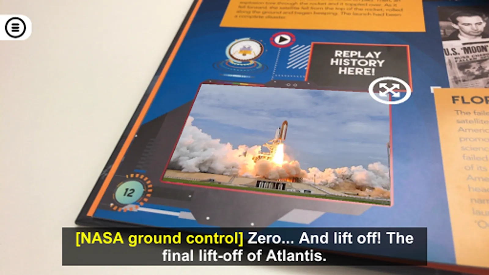 - Activate amazing archive videos of spaceflight that appear to play on the pages of the book.