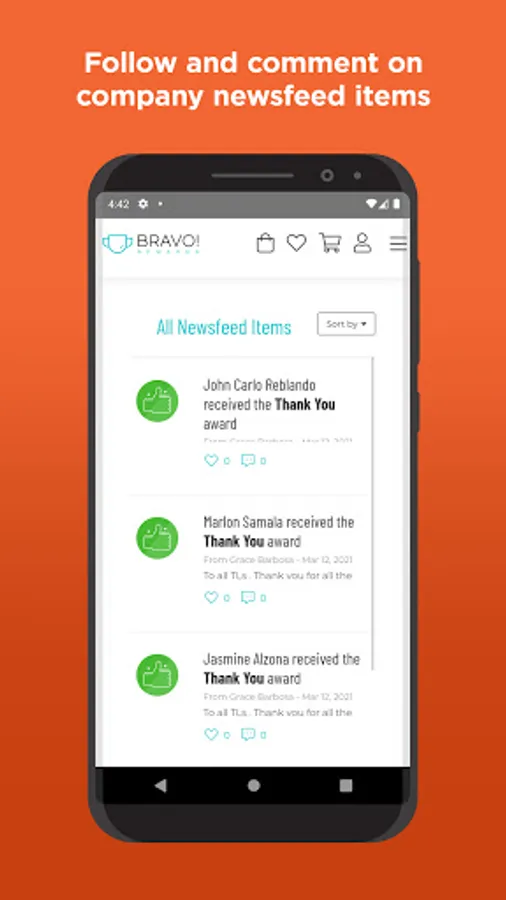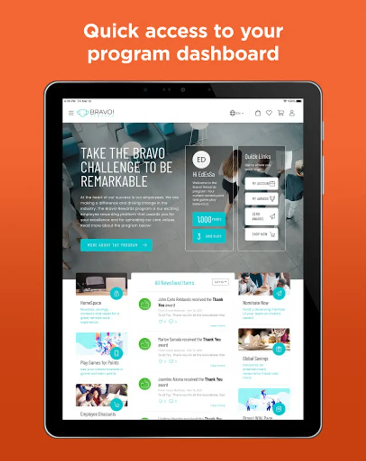 • stay up-to-date with a company newsfeed of awards, birthdays and more