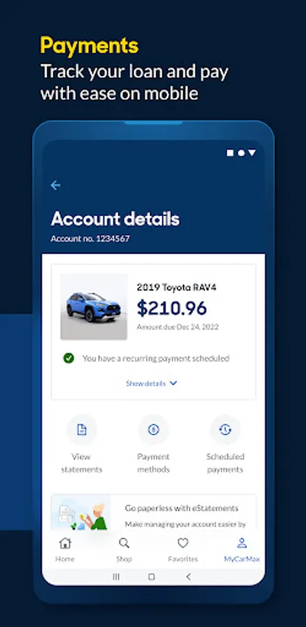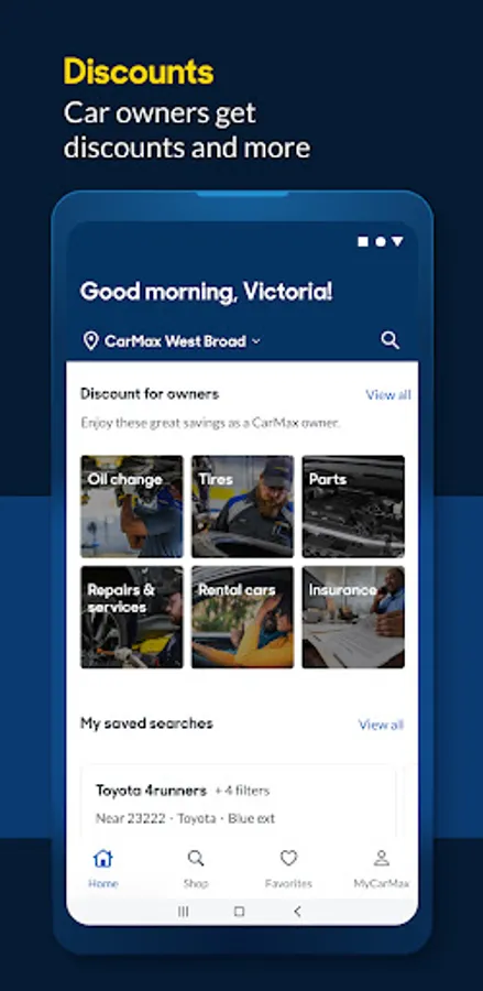 Welcome to the CarMax app. Designed to make your next car journey more convenient, whether you’re buying with us, scheduling a test drive or paying off your loan. Download and get started today!
