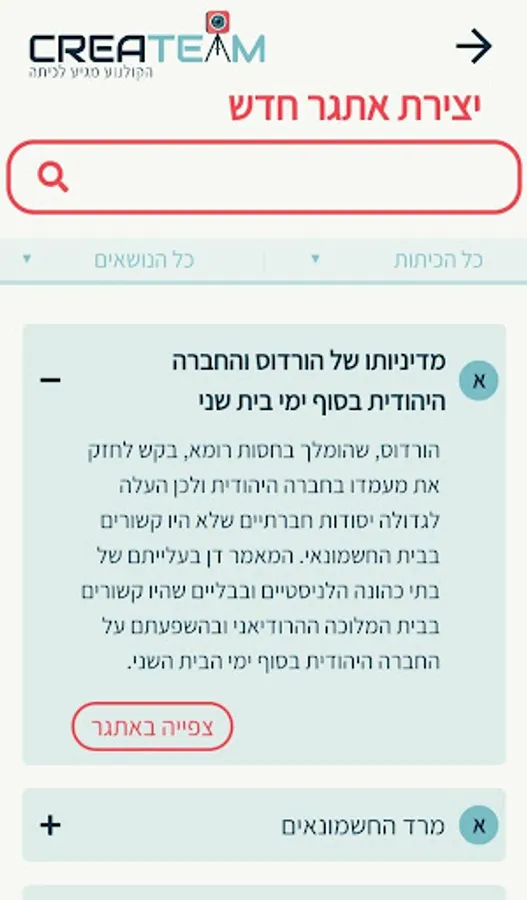 The app can be connected as a teacher or as a student. The teacher can view all existing topics in the system or create a new topic, write questions about it and add links to information sources. He then divides his classroom into working groups that will work together on the topic.