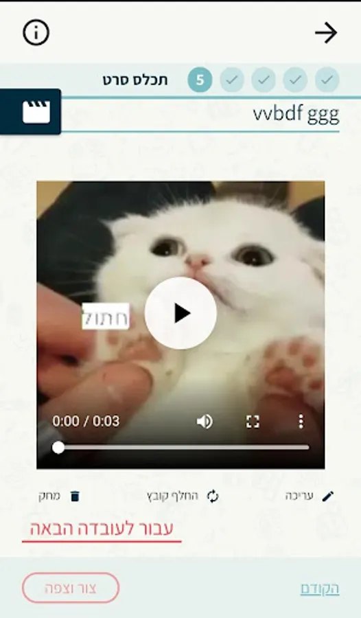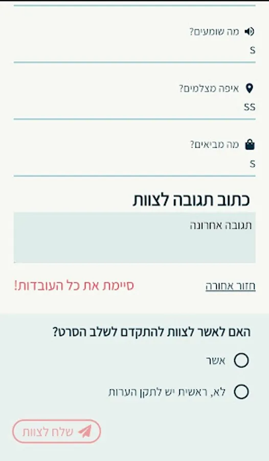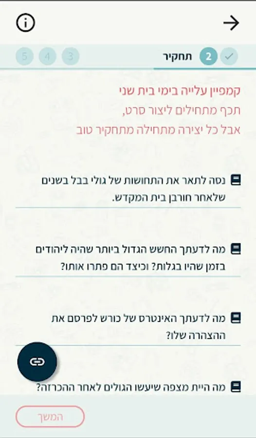 The student, along with his teammates, answers the questions and then designs and writes a script for the film on the subject he learned. Finally, the student and his friends film the film and upload an app - where they can edit the film and add subtitles to it, and the teacher can watch the film (and before that, in the script written by the students) and send comments to the students.